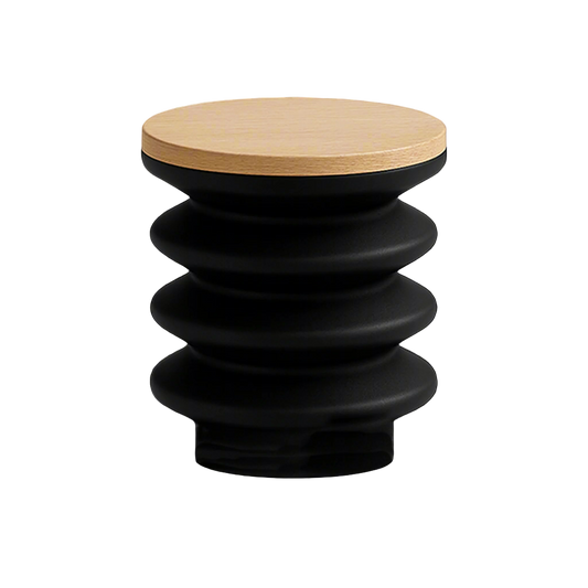 The silicone pump ensures fast and effective cleaning, while the wooden lid neatly closes the grinding chamber.