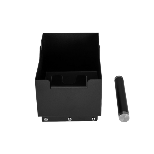 The perfect addition to your coffee set is this AVX knock box. Made of powder-coated steel and featuring a sound-absorbing rubber rod, it allows you to knock your filter holder quietly and smoothly.