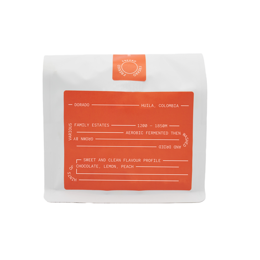 Deze koffie wordt geproduceerd door een coöperatie in de regio Huila, een project waarbij meerdere familiebedrijven betrokken zijn. De koffiebonen worden zorgvuldig geselecteerd door de koffietelers, die hun kennis van generatie op generatie hebben overgedragen. Na de oogst ondergaan de bonen een korte aërobe fermentatie. Daarna worden ze gewassen. Vervolgens worden de bonen in de zon gedroogd. Het resultaat is een zuivere en zoete koffie met hints van chocolade en perzik.