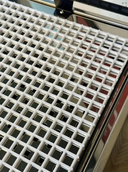 De grid is gemaakt van horeca-kwaliteit materiaal: slijtvast, stevig en ontworpen voor dagelijks gebruik. Naast bescherming heeft de grid een dempende werking, geen ratelende kopjes meer dus.
