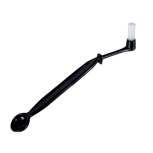 Deze borstel is slim ontworpen met een handvat dat je handen beschermt tegen heet water, en aan de achterzijde zit een klein schepje waarmee je eenvoudig backflush-poeder kunt doseren.